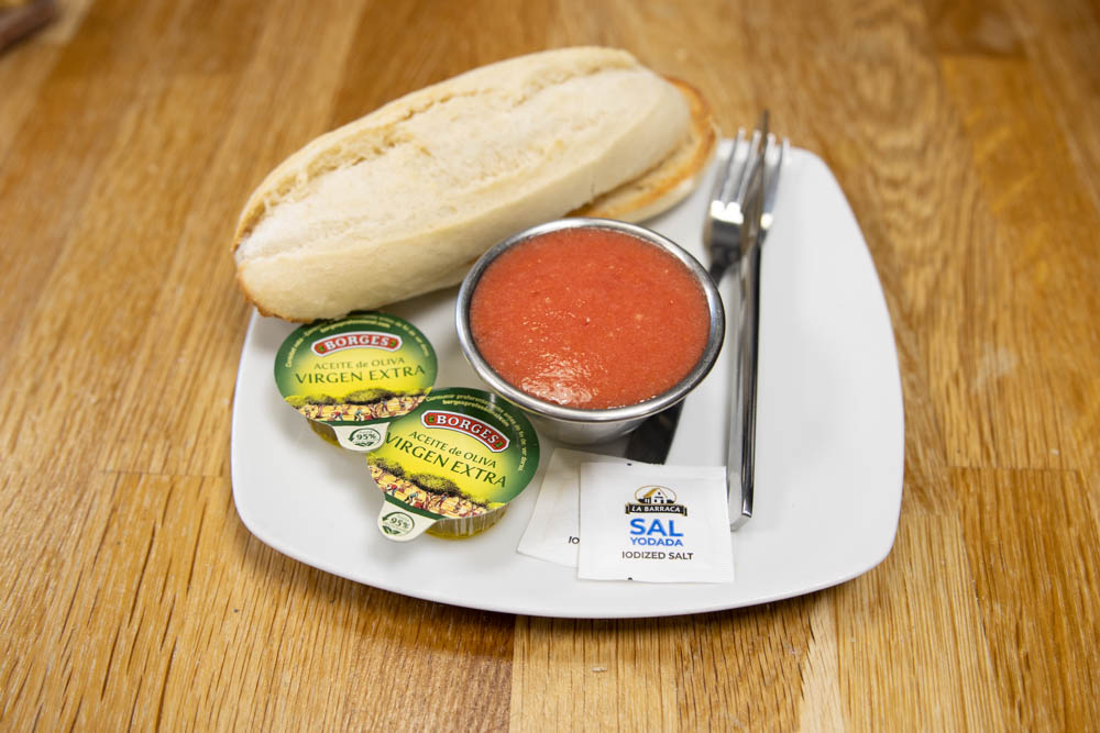 Jamón serrano, aceite y tomate.